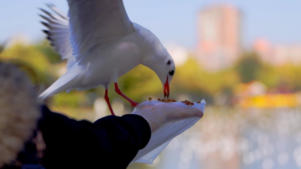 2025年,這場跨越山海的“冬季之約”更添新彩——截至11月中旬,抵昆紅嘴鷗總數約達2萬隻,大部隊(以數量超過200隻為計)于10月29日正式集結滇池,開啟了最佳觀鷗季。“第一次這麼近距離看海鷗,它們一點都不怕人,太治愈了!”來自哈爾濱的遊客李女士舉著相機連拍不停,鏡頭裏紅嘴鷗掠過肩頭,啄食她掌心的鷗糧。她笑著説,“早就聽説昆明的‘人鷗之約’,特意帶著孩子來感受一下。”