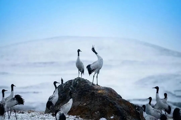 近日,被譽為“高原精靈”的國家一級保護動物黑頸鶴,已先期抵達昭陽區大山包黑頸鶴國家級自然保護區,它們優雅的身影,為昭通的冬季增添了無限生機與詩意。