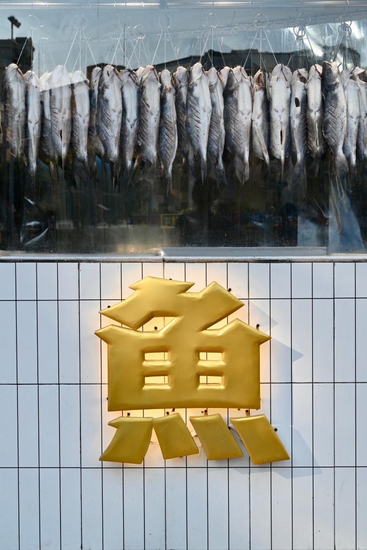 陽光下,金“魚”招牌與魚幹相映,盡顯中國市井煙火氣。