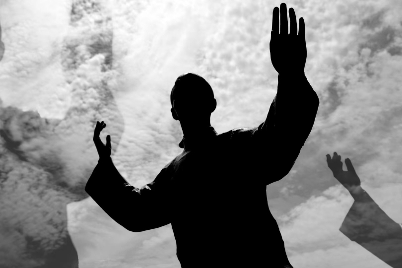 The Tai Chi dancer stretches their body between heaven and earth, inheriting the spirit of Chinese martial arts.