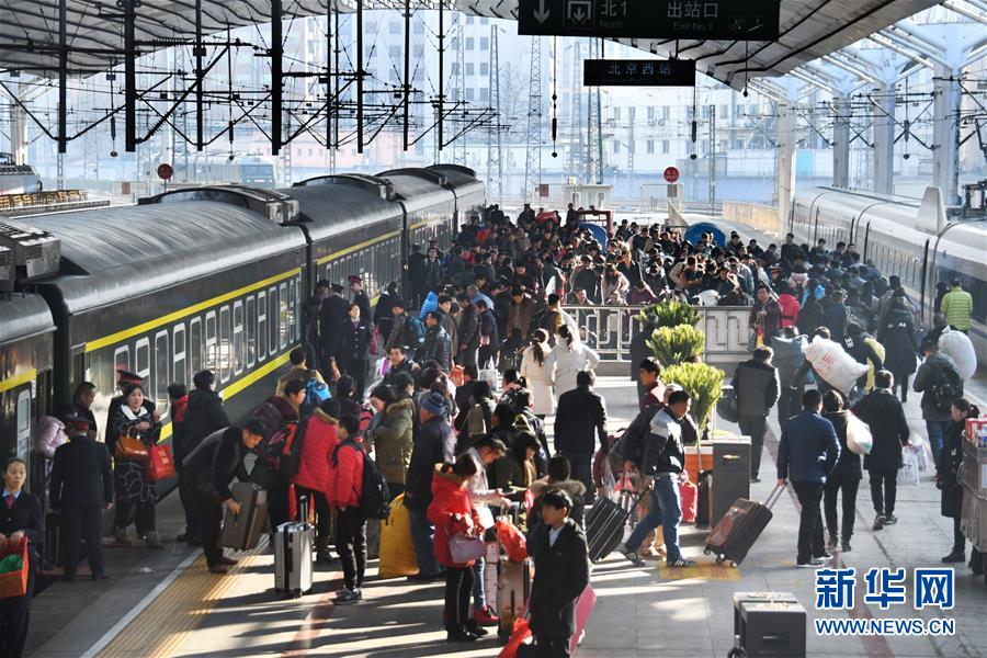 2月12日,旅客抵達北京西站後準備出站。元宵節過後,各地迎來節後第二輪鐵路返程客流高峰。 新華社發(楊寶森 攝)