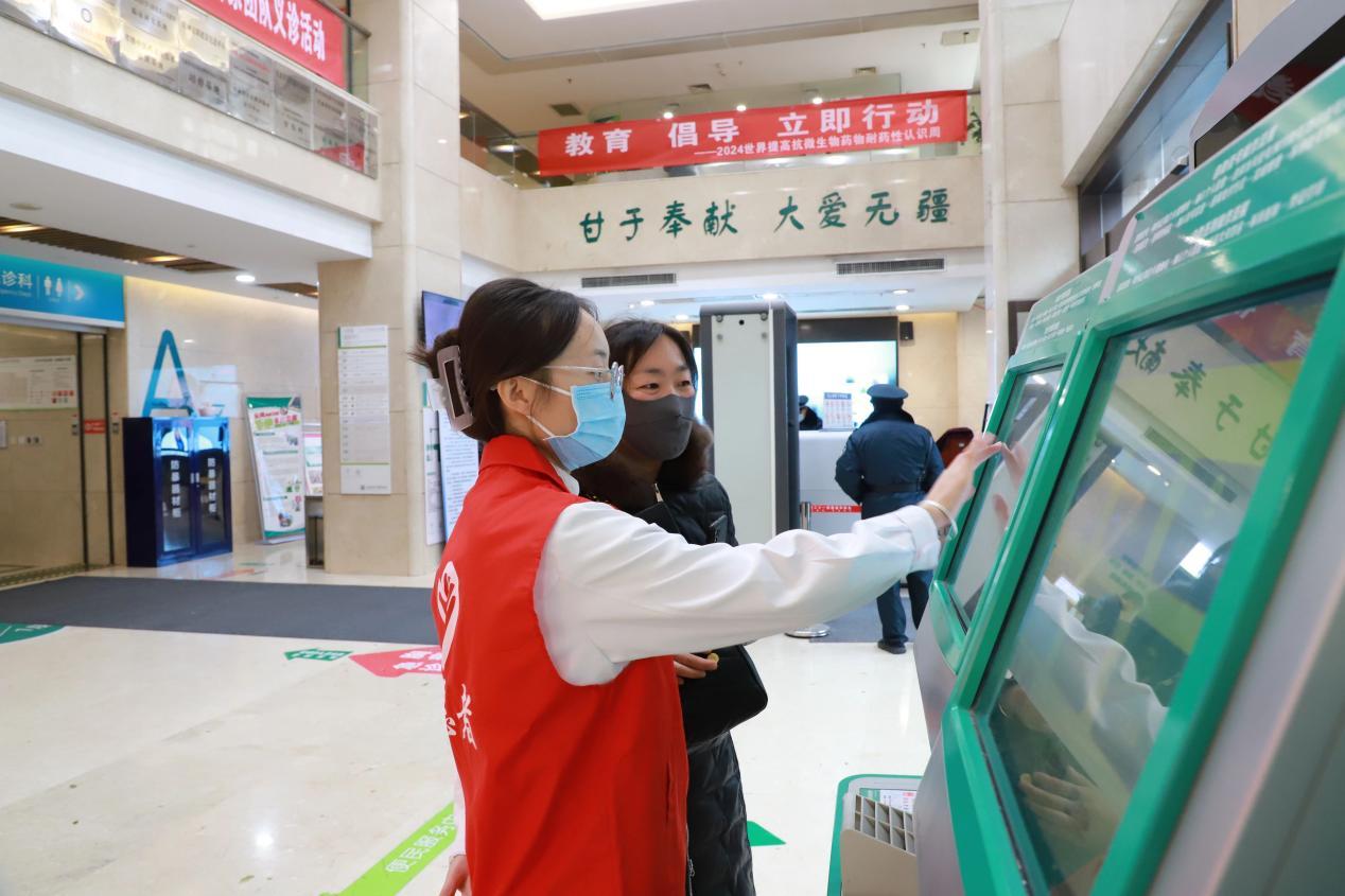 近日,甘肅中醫藥大學附屬醫院團委牽頭開展“志願者服務月”活動,志願者主要來自住培醫師第一、二、三黨支部黨員及團員。志願者在醫院門診一樓、四樓名中醫工作站就醫高峰時間段協助門診患者就醫掛號、就診檢查、使用自助機、獲取檢查報告、辦理住院手續;幫助患者了解就醫流程、引導患者到達就診區域,維持收費室、門診藥房排隊病患及家屬有序繳費和取藥;為老弱及行動不便的患者提供輪椅幫助,就醫指引等。
