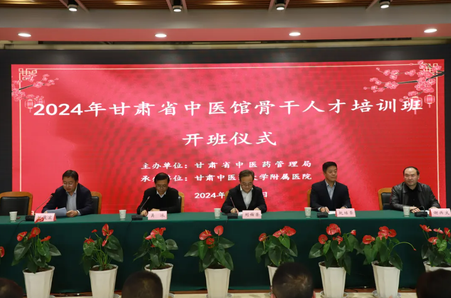 出席開班儀式的領導有甘肅省中醫藥管理局局長、甘肅省衛生健康委員會副主任(兼)劉伯榮,甘肅中醫藥大學校長趙繼榮,甘肅中醫藥大學附屬醫院黨委書記吳冰、院長謝興文。儀式由甘中附院副院長劉俊宏主持。2024年甘肅省中醫館骨幹人才培訓班學員200余人參加了開班儀式。