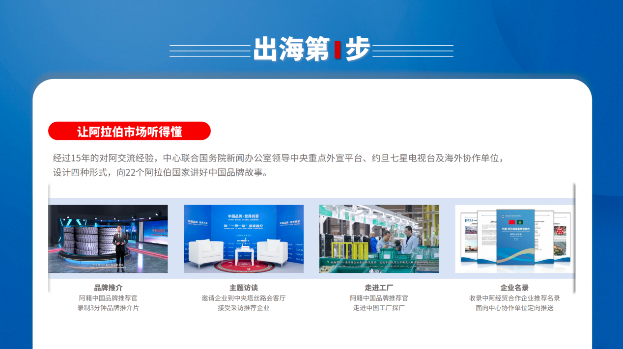 語言是溝通的橋梁,確保品牌資訊的準確傳達至關重要。企業需聘請專業的翻譯團隊,不僅要翻譯文字,更要理解並傳遞品牌背後的文化內涵和價值觀,使之符合目標市場的文化語境。不同國家和地區有不同的文化背景和審美偏好。中國品牌出海時,應根據目標市場的文化特點,對品牌形象、廣告創意、産品設計等進行適當調整,以增強品牌的親和力和吸引力。同時還要挖掘品牌故事中的普世價值,如創新、環保、社會責任等,這些價值觀在全球範圍內都能引起共鳴。通過生動的故事講述,讓外國消費者感受到品牌的溫度和價值。阿拉伯國家-中國經貿合作創新中心邀請阿籍中國品牌推薦官,通過錄製品牌推介視頻、訪談對話、走進工廠、阿語名錄的方式提供了系列解決方案。
