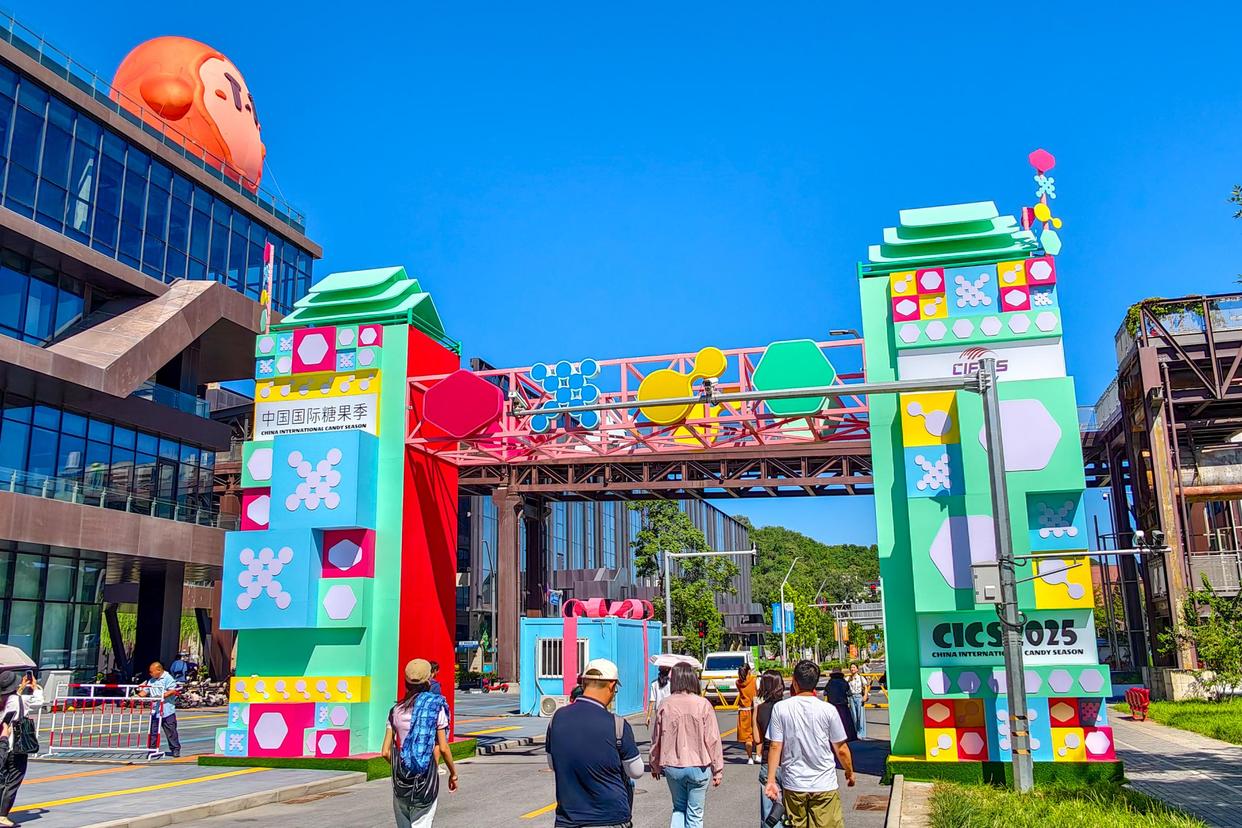來到大跳臺區域,跨過一道彩色的大門,一場甜蜜之旅等待遊客開啟。邁入糖·潮街,五顏六色的糖果品牌快閃店排成一列,多家國民糖企和跨界品牌齊聚,快閃首發、主題試吃等活動都將舉辦。